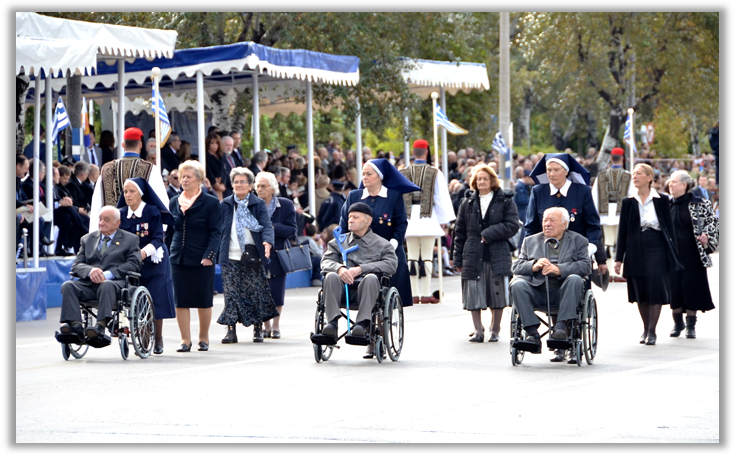 Οι ανάπηροι πολέμου από την Ελλάδα και την Κύπρο, συνοδευόμενοι από ένστολες νοσηλεύτριες του Ελληνικού Ερυθρού Σταυρού, απέσπασαν το πιο θερμό χειροκρότημα του Προέδρου της Δημοκρατίας και όλων των παρευρισκομένων, καθώς αναβίωσαν μνήμες από τον πόλεμο του 40, στον οποίο πρωταγωνίστησε με τη δράση και την αυτοθυσία της η Ερυθροσταυρίτισσα νοσηλεύτρια-σύμβολο της νεώτερης ιστορίας.