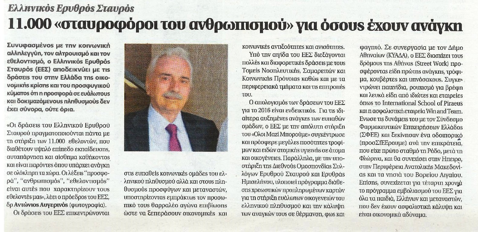 του έργου των δύο τομέων (Νοσηλευτικής & Σαμαρειτών) καθώς και